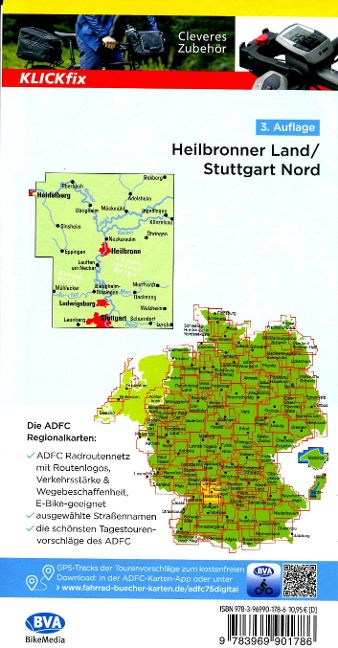 ADFC-Regionalkarte Heilbronner Land - Stuttgart Nord 1:75.000, reiß- und wetterfest, mit kostenlosem GPS-Download der Touren via BVA-website oder Karten-App