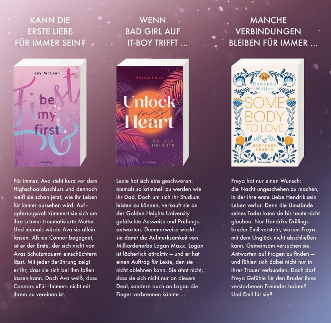 Alexandra Flint wurde 1996 geboren und lebt mit ihrer Familie in München. Nach ihrem Studium der Elektro- und Informationstechnik widmet sie sich heute ganz ihrer großen Leidenschaft für Geschichten, die berühren und die Welt vergessen lassen. Neben dem Schreiben ist sie oft in der Welt unterwegs, liebt Liebesromane jeder Art, Kaffee und lange Tage mit Freund:innen. Instagram: @alexandraflint.autorin Website: alexandraflint.de