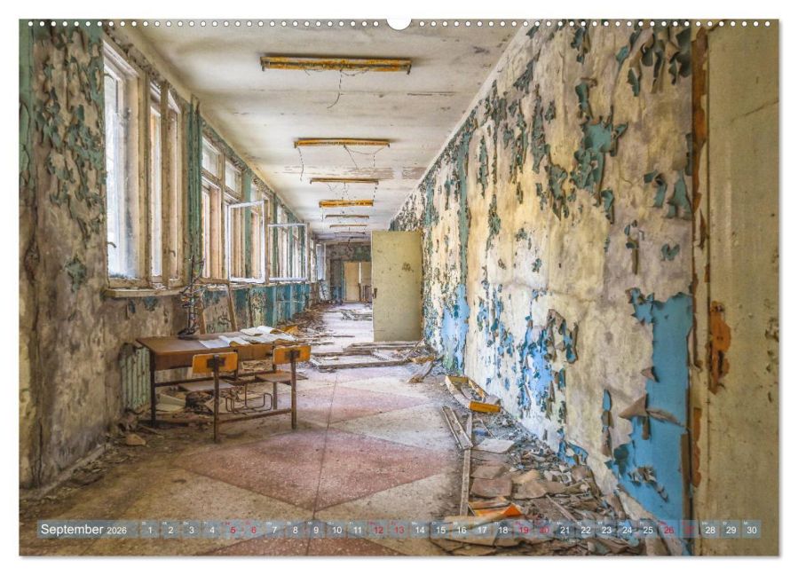 September: Der menschenleere Gang in der Mittelschule in Prypjat