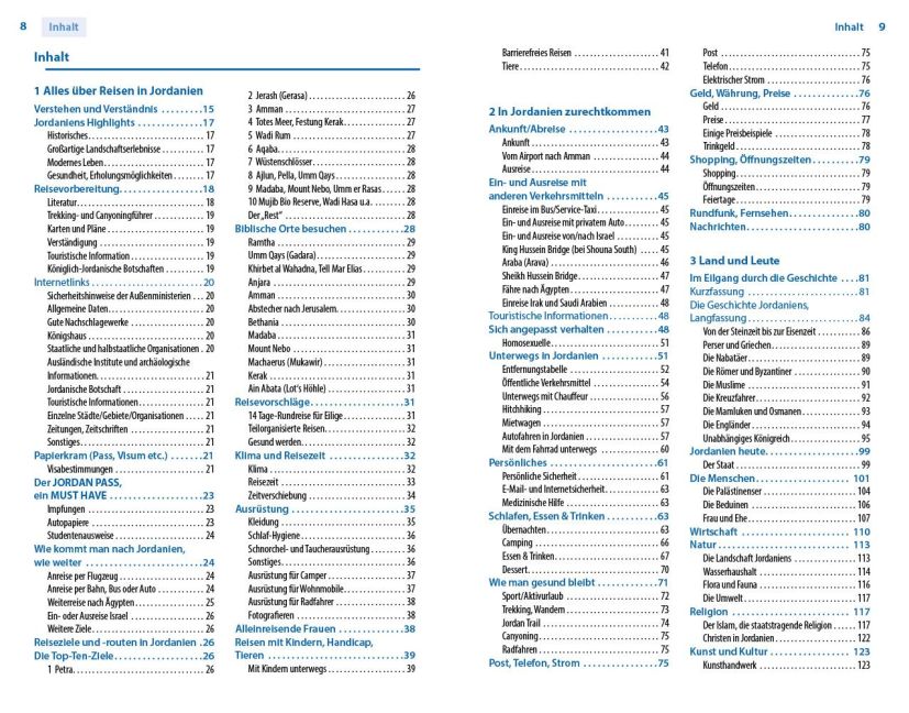 Nahezu jeder Besucher kehrt begeistert von der Vielfalt der Erlebnisse aus Jordanien zurück. Andererseits freuen sich die Jordanier über jeden Touristen, der ihr Land bereist und es damit unterstützt. Doch viele Europäer ziehen andere Ziele vor, weil sie sich vor Anschlägen fürchten. Dabei ragt Jordanien aus dem Chaos des Nahen Ostens als eine Insel der Stabilität und Sicherheit heraus. Das relativ kleine Königreich hat sich erfolgreich gegen seine gefährlichen Nachbarn abgeschottet, seine Bewohner halten zusätzlich zu Militär und Geheimdienst die Augen kritisch offen. Individualreisende berichten unisono, dass sie sich sicher fühlten und unkompliziert reisen konnten. Nicht zuletzt genossen sie den Besuch wegen der so freundlichen und hilfsbereiten Menschen. Schließlich bietet Jordanien Highlights für jeden Urlaubsgeschmack. Das beginnt bei dem weltbekannten Weltkulturerbe Petra, mit seiner unvergleichlichen Landschaft und der darin eingebetteten 2000 Jahre alten Felsen-Architektur der Nabatäer. Fast gleichzeitig hinterließen die Römer mit Gerasa (heute Jerash) die besterhaltene römische Stadt östlich des Mittelmeers mit u.a. Theatern, Tempeln und einer Pferderennbahn. Christliche Pilger finden viele Orte aus der Zeit Jesu, seine Taufstelle Bethania am Jordan ist der Höhepunkt. Aktivurlauber können sich mit Canyoning durch enge, manchmal nur schulterbreite Schluchten ziemlich extrem austoben. Wüstenfreunde finden im Wadi Rum eine faszinierende Landschaft, in der Felsgiganten fast senkrecht aus dem roten Sand aufragen. Freundliche, unaufdringliche Beduinen laden zu viel gerühmten Wüstentrips und Übernachtungen in ihren Camps ein. Wanderer finden in den bewaldeten Bergen im Norden viel Auslauf oder können sich geführten Trecks z.B. durch die Wüste vom Wadi Rum nach Petra anschließen. Wer sich nach all den Aktivitäten ausruhen will, kann Wellness am Toten Meer buchen und sich in dessen Wasser scheinbar schwerelos treiben lassen. Zu tiefen Einblicken in die bunte Unterwasserwelt lädt Aqaba mit seinem Strand am Roten Meer ein. Kurz gesagt: Jordanien bietet dem Besucher so viel und davon so viel Ungewöhnliches, dass man für seine Beschreibung ein ganzes Buch füllen muss.