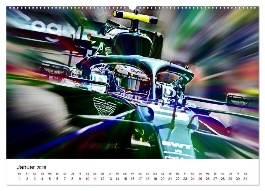 Abbildungen:Januar: Der deutsche Sebastian Vettel hat vier Weltmeistertitel gewonnen und ist auch weiterhin hoch motiviert.