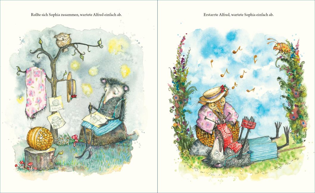 Ein Opossum findet Freunde Wenn Opossums sich erschrecken, erstarren sie zur Salzsäule. Leider ist Alfred ein außerordentlich schreckhaftes Opossum. Das ist ganz schön unpraktisch, vor allem, wenn man neue Freunde finden will. Gürteltieren geht es da ganz ähnlich: Beim geringsten Schreck rollen sie sich zusammen. Und so dauert es eine ganze Weile, bis Alfred und Sofia, das Gürteltier, sich näherkommen. Doch mit viel Geduld auf beiden Seiten klappt es schließlich doch. Und siehe da, es gibt noch eine ganze Reihe kurios-schreckhafter Tiere, die sich der neuen Bande anschließen wollen! Ein Bilderbuch für alle, die so mutig sind, zu ihrer Angst zu stehen. Zu diesem Buch finden Sie Quizfragen auf antolin.de