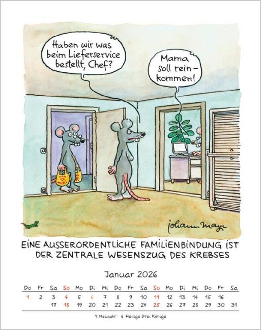 - Sternzeichenkalender mit lustigen Cartoons auf 12 Seiten, Format: 19 x 24 cm- Hervorragende Druckqualität bis ins Detail- FSC zertifiziertes Papier aus verantwortungsvollen Quellen Der erfolgreiche Sternzeichenkalender mit charmanten und witzigen Cartoons für jeden Monat von Johann Mayr.