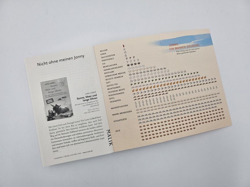 Lotta Lubkoll, geboren 1993 in Coburg, ist ausgebildete Schauspielerin und Bestsellerautorin. Auf spannenden Vorträgen nimmt sie ihr Publikum mit auf ihre Reisen. Als Erlebnispädagogin leitet sie Ferienfreizeiten und unternimmt Wald- und Naturabenteuertage mit Kindern. Neben Reisen, Skaten, Klettern und Kitesurfen schraubt sie an ihrem selbst ausgebauten Bus, in dem auch Esel Jonny seinen Platz hat. Gemeinsam mit Lottas Mann Stefan wohnen die beiden auf einem ehemaligen Bauernhof im Süden von München. Bei Malik erschienen von Lotta Lubkoll 'Wandern, Glück und lange Ohren' sowie 'Sonne, Meer und lange Ohren'.