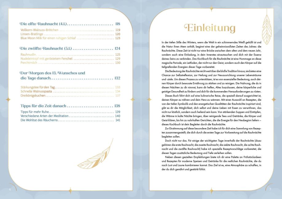 Das Kochbuch für die Rauhnächte lädt Sie ein, alte Traditionen und moderne Rituale zu entdecken und zu genießen. Die Rezepte sind mehr als nur Kochanleitungen - sie sind ein Weg, Körper und Seele zu wärmen und die Sinne zu beleben. Dieses Buch ist ein kulinarischer Wegweiser durch die Rauhnächte, der Ihnen neue Perspektiven eröffnet und Sie dazu anregt, die Magie und die Schönheit dieser besonderen Zeit in ihrer ganzen Fülle zu erleben.