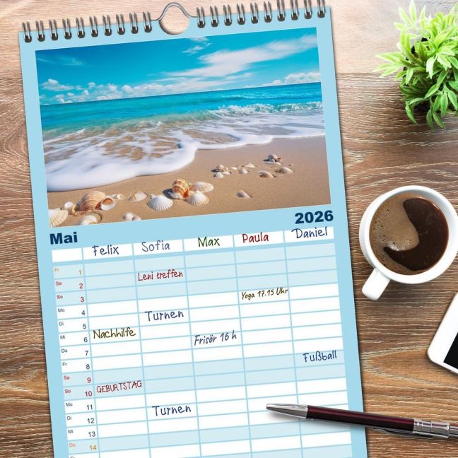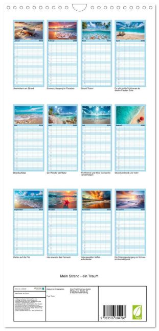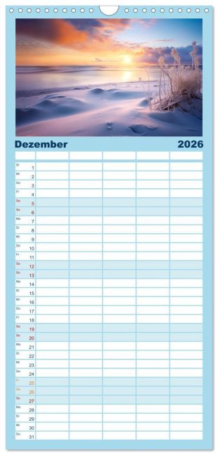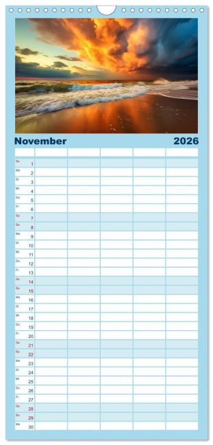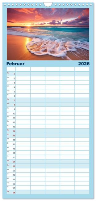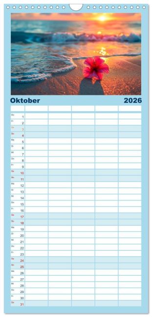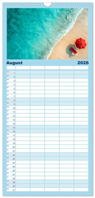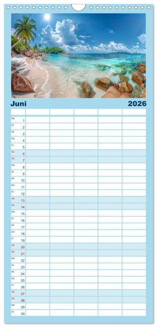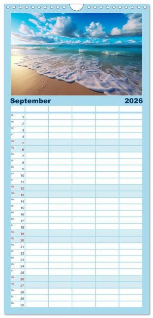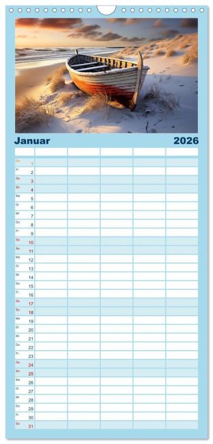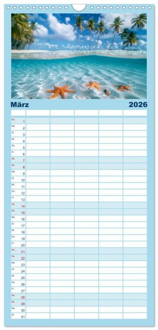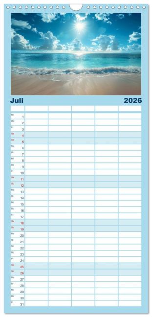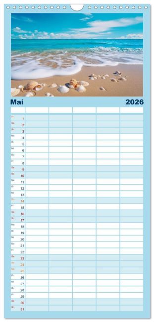 Familienplaner 2026 - Mein Strand - ein Traum mit 5 Spalten (Wandkalender, 21 x 45 cm) CALVENDO