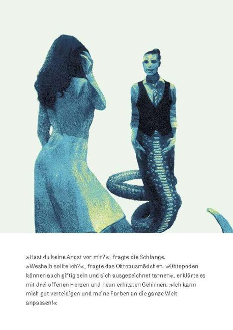 'Der Mond war ein Leuchtturm im wogenden Kosmos und das Oktopusmädchen gestrandet in einer sandigen Welt, in der Menschen etwas sagten und etwas anderes meinten.' Ein Sommer, eine Begegnung, eine Liebe, die alles verändert. Das Oktopusmädchen hat es mit seinen neun Gehirnen, drei Herzen und acht Tentakeln unter den Menschen nicht einfach. An einem sonnigen Sommertag trifft es eine Schlange, die seine Herzen höherschlagen lässt. Zum ersten Mal spürt es, wie es ist, jemanden nahezukommen. Es betritt es zum ersten Mal den Kosmos der romantischen Liebe. Wie die Beziehung ausgeht, steht allerdings in den Sternen.