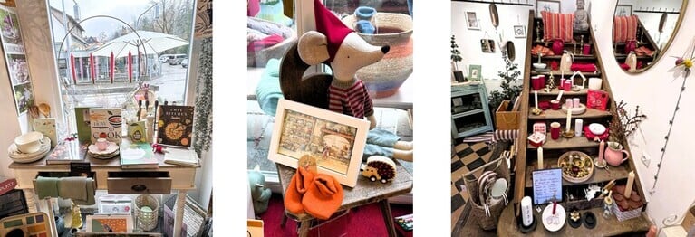 Bei uns finden Sie auch eine Vielzahl von geschmackvoll ausgewählten Geschenken wie Tücher, Schmuck, Bunzlauer Geschirr, Lampen, Teelichter und Taschen - vieles individuell entworfen und gestaltet von jungen Designerinnen und oft nur als Unikat zu erhalten. Schauen Sie sich in Ruhe um, testen und probieren Sie alles und finden Sie für Sich oder Andere das passende Geschenk!