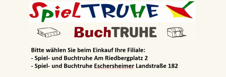 Bücher und Spielwaren in Frankfurt Dornbusch an der Eschersheimer Landstrasse und in Frankfurt Riedberg im Einkaufscenter direkt gegenüber vom REWE Center. Die Spiel- und Buchtruhe in Frankfurt Dornbusch und Frankfurt Riedberg bietet Ihnen eine große Auswahl an Spielen, Büchern, Spielzeuge, sowie Schreibwaren und Geschenkartikel für Erwachsene und Kinder.