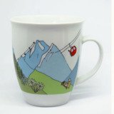 Ein geschwungener Becher für Tee oder Kaffee mit Bergmotiven
