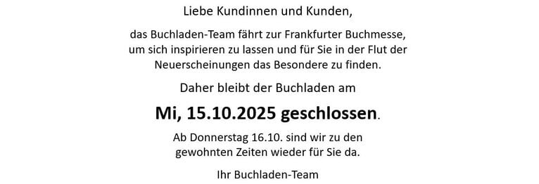 Ebenso sind wir natürlich telefonisch (07138-810204), per Mail (buchladenschwaigern@web.de) oder WhatssApp (0179-4868760) erreichbar.